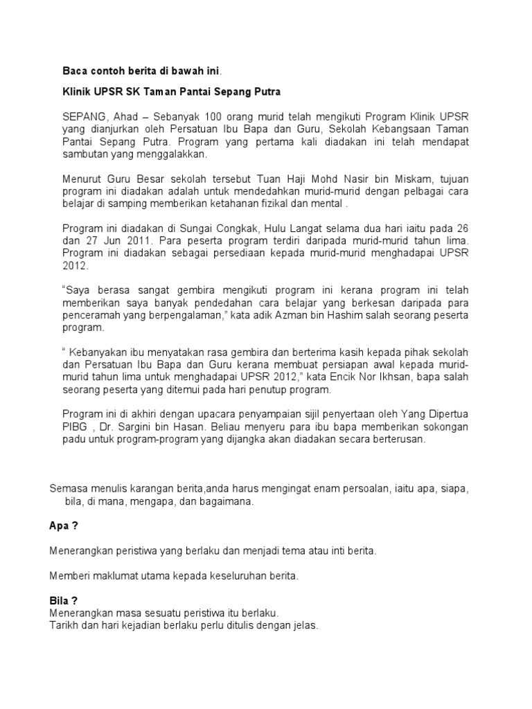 Karangan Jenis Berita Upsr Englshkara