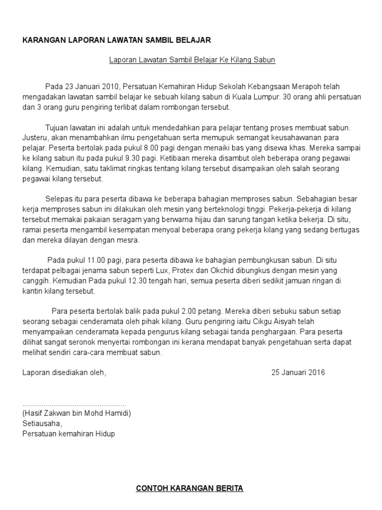 Karangan Laporan Lawatan Sambil Belajar Dan Berita Pdf